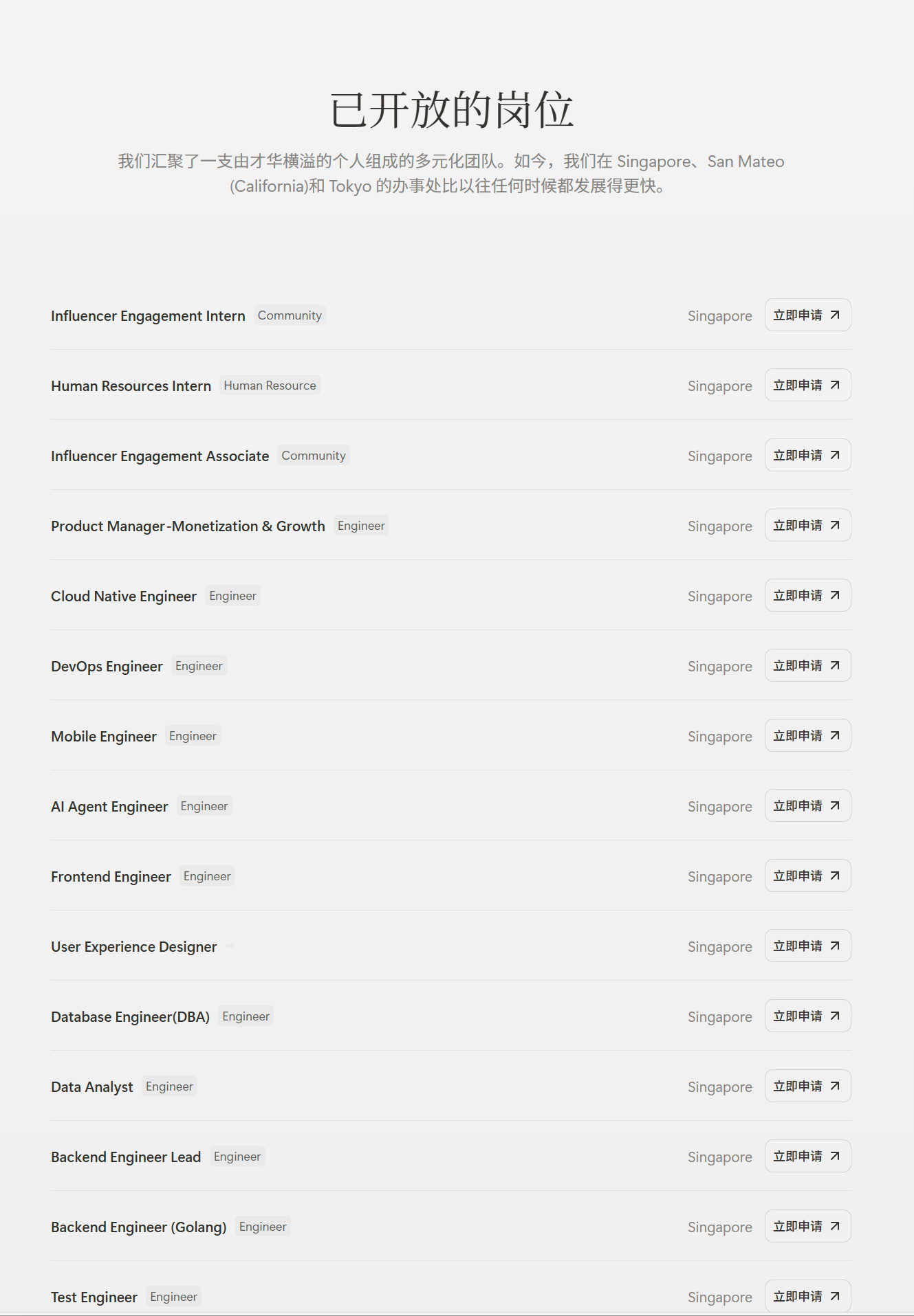 记者还注意到,Manus已开放包括AI智能体工程师、测试工程师在内的多个岗位,办公地址均显示为新加坡。